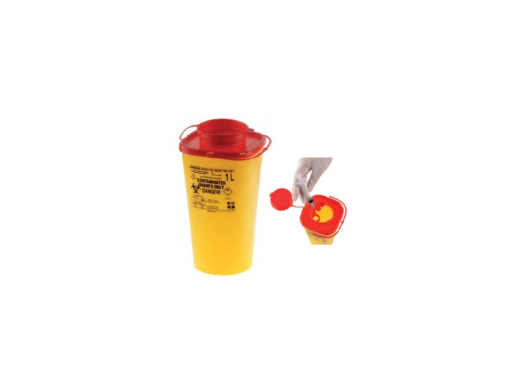 Jednorázová nádoba určená pro sběr a transport infekčního klinického odpadu, včetně ostrých předmětů a jehel. Kontejnery jsou opatřeny víkem, které umožňuje vícenásobné otevření (pohotovostní poloha) a následné konečné uzavření (nevratná poloha).