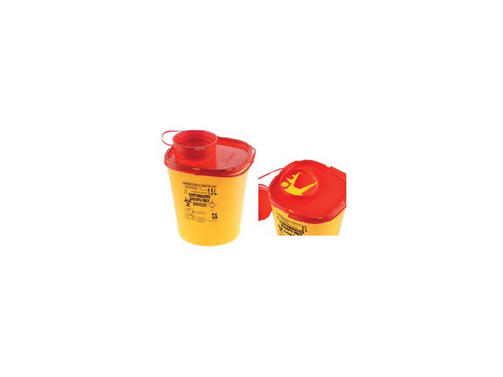 Jednorázová nádoba určená pro sběr a transport infekčního klinického odpadu, včetně ostrých předmětů a jehel. Kontejnery jsou opatřeny víkem, které umožňuje vícenásobné otevření (pohotovostní poloha) a následné konečné uzavření (nevratná poloha).