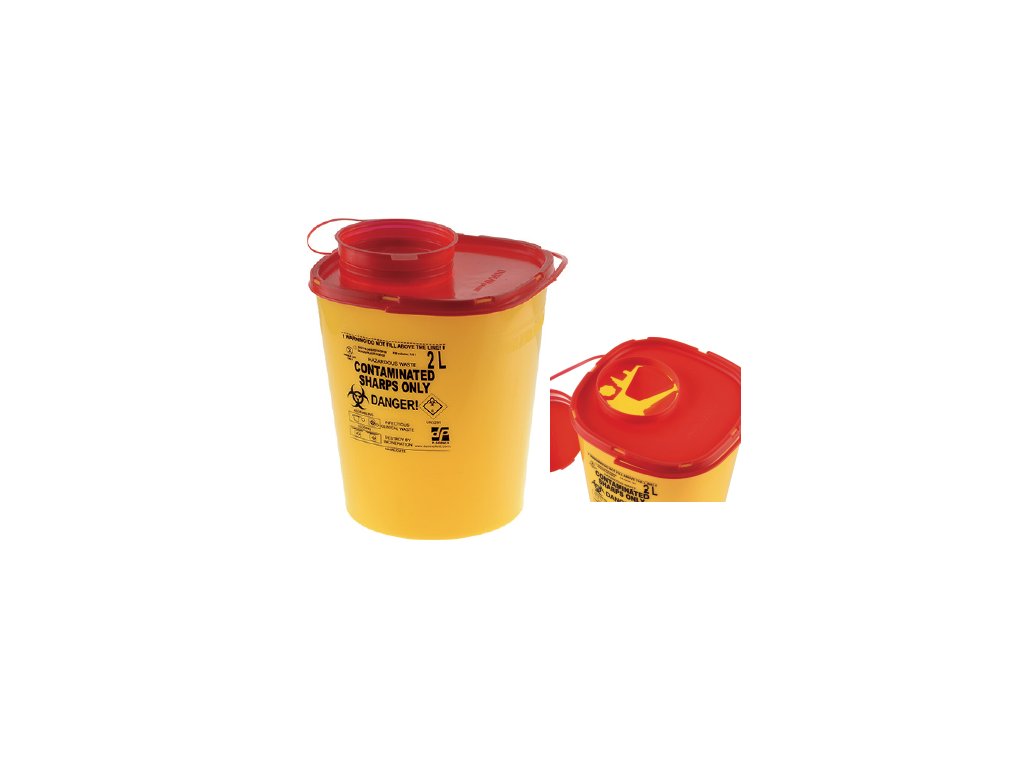 Jednorázová nádoba určená pro sběr a transport infekčního klinického odpadu, včetně ostrých předmětů a jehel. Kontejnery jsou opatřeny víkem, které umožňuje vícenásobné otevření (pohotovostní poloha) a následné konečné uzavření (nevratná poloha).